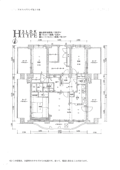 ・現在、賃貸中につきオーナーチェンジでの取引 ・ルーフバルコニー:58.14㎡ ・LD約16.9帖、K約4.5帖、洋室①約9.1帖、洋室②約9.1帖、和室約6帖+板敷約1帖 ・町内会費:月額350円(年2回まとめて支払い) ・トランクルーム、エレベーター、宅配ボックス ・FFガス湯沸器、ガスFF式温風暖房機 ・ペット不可管理費(月額)